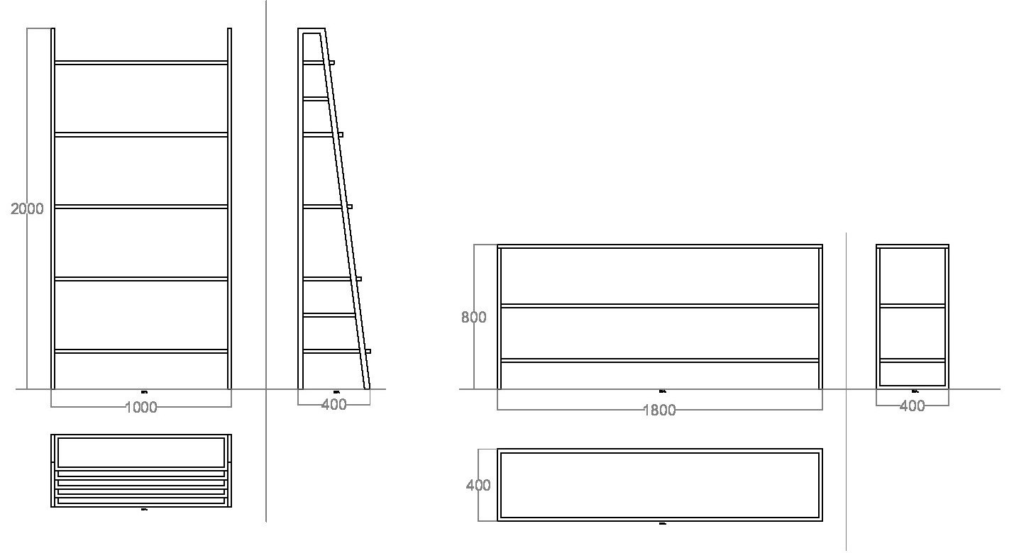 مكتبة وطاولة تلفزيون مصنوعة من الخشب والمعدن